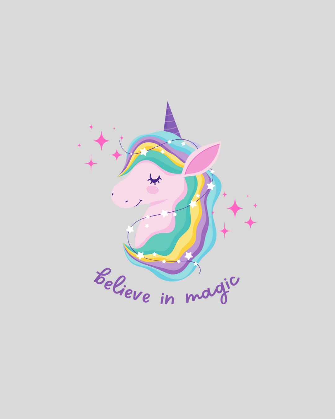 Add a touch of enchantment to your wardrobe with this "Believe in Magic" Unicorn T-Shirt. Featuring a dreamy pastel unicorn and sparkles, this black tee is perfect for unicorn lovers who believe in a little magic!