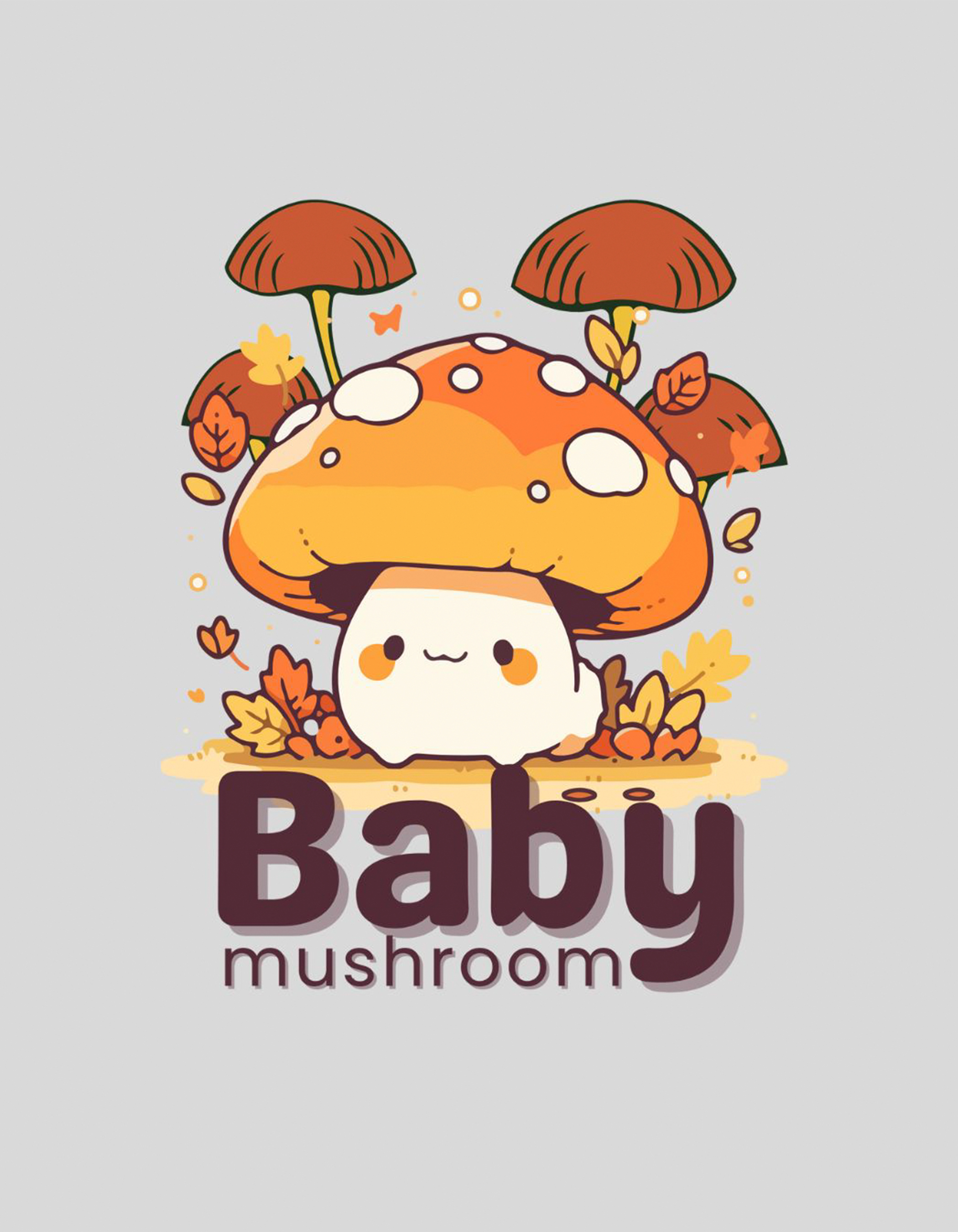 Text "Baby mushroom" printed below in a cute, bold font.